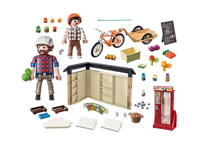 Fresh, regional and preferably organic - that's how food should be. In the Country Farm Store, customers can buy fresh fruit, vegetables, dairy products and beverages around the clock and at fair prices. The farmer harvests the vegetables fresh from the field and brings them directly to the farm store. On the shelves, the food can be neatly arranged and well presented. The PLAYMOBIL Country Farm Store invites children to slip into the role of farmers and shopkeepers and act out fun sales situations.