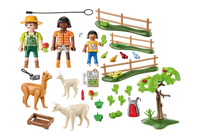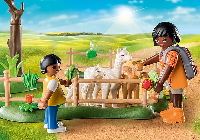 The cute alpacas can be guided with the help of the halter. Green fodder is available as a reward.